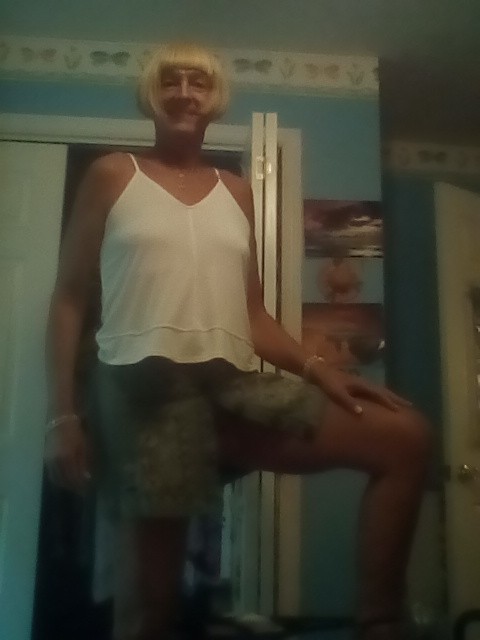 Strap top with short skirt.