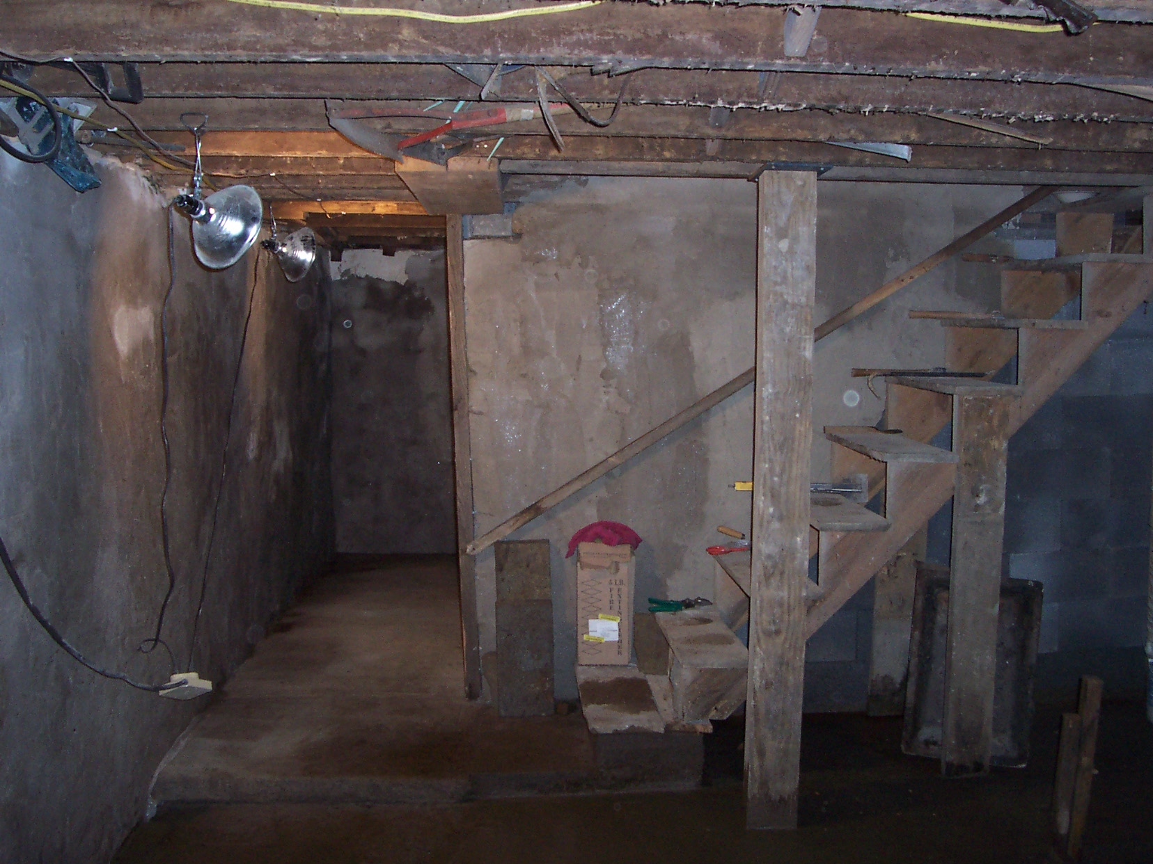 root cellar at bottom of stairs